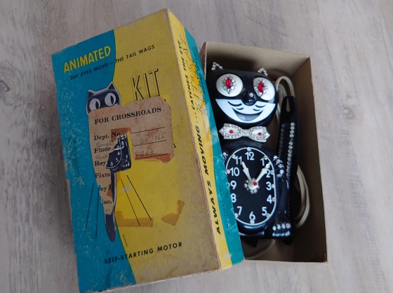 ◆ 8/21/2025Kit-Cat Klockがガシャポンに シッポも目もちゃんと動いて意外とカワイイ。 思えば1991年か92年頃だった、ハリウッドからサンタモニカへ向かう途中たまたま見つけた小っちゃな古着屋さん。 売ってた古着はぼくらの趣味じゃなかったけどそこで見つけたのがこれ、 1966年と手書きされたJeweledのKit-Cat Klock。 この箱からCalifornia Clock Companyという会社をを辿ると何と現存していることが判明。 ぼくが買ったのはコンセントのだけど、その頃は電池式になっててね。 もちろん仕入れ開始、以来リプレイにガンガン仕入れました。 色目も増えていったから何百個って売れたと思う。 ダズン単位でオーダーするんだけど不良品率が高くてね、動かないのは人にあげちゃったりして。 今じゃビームスでもamazonでも売ってる。 同じ頃、仕入れはしなかったけどLava Lampとかぼくらでも面白いものを発掘できた時代だった。 |